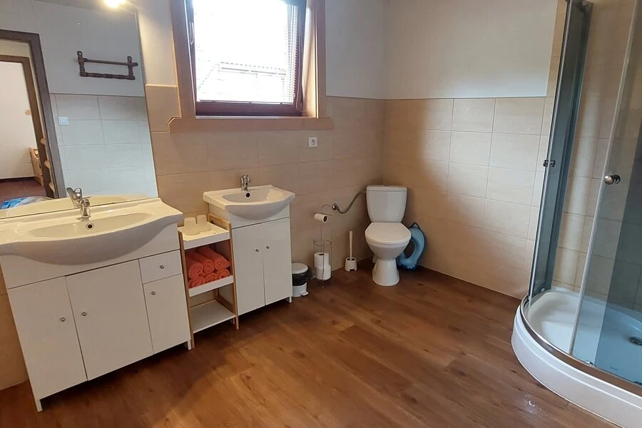 - Kúpeľňa: kúpeľňa so sprchovým kútom a toaletou